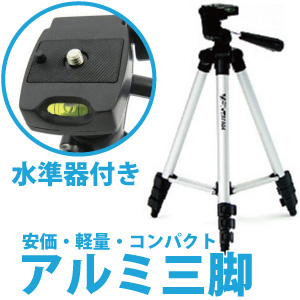 - 4段アルミ三脚 最大1020mm!軽量! 水準器付/3Way雲台 本州九州四国送料無料