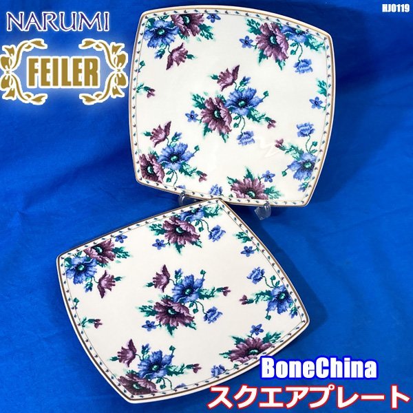 - 希少!! NARUMI&FEILER ペア スクエアプレート ナルミ フェイラー 角皿 20cm アンティーク 2枚セット ◇HJ-0119