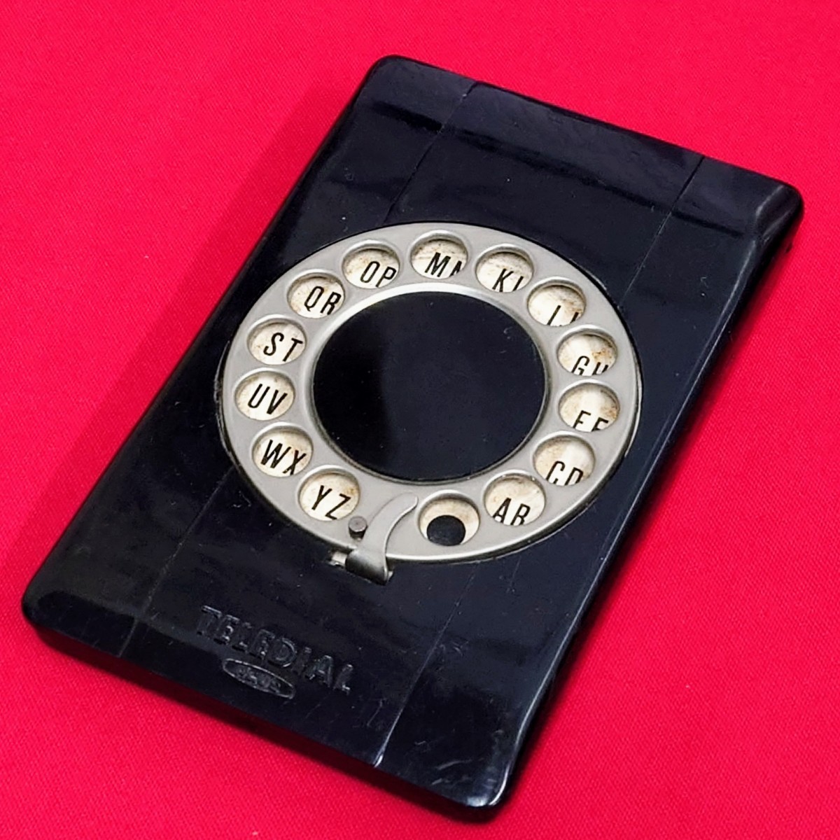 - 昭和レトロ 黒電話風 ダイヤル式電話帳 PLUS TELDIAL 当時物希少品 イニシャルのダイヤルを回すとそのページがパーンと開くアドレス帳です