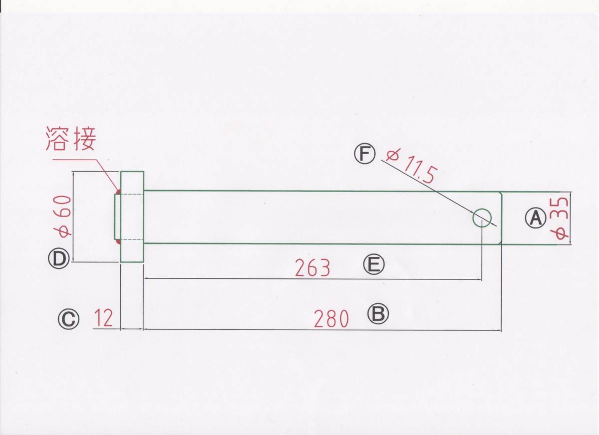 - NO 1671 φ35用 溶接ツバ下280mm バケットピン1本 ストッパーカラー1個 ボルト・ナットセット 重機用