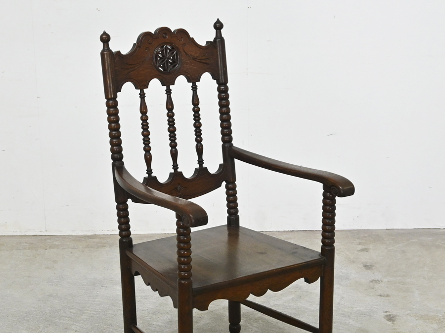 - 1930年代アンティーク イギリス オーク無垢材 ジャコビアン様式 ハイバックアームチェア/英国 クラシック ロイズ 永田良介商店 松本民芸