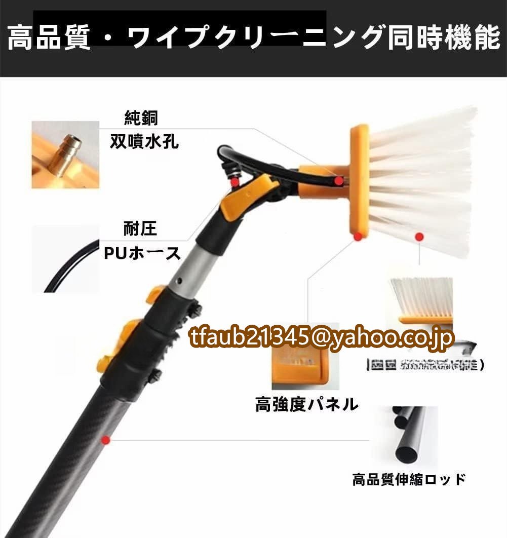 - 高所掃除ブラシ 外壁掃除 3.6m~9m 給水伸縮ブラシ 40Cmブラシヘッド 窓ガラス 業務用 超ロングポール 取り外しが簡単 (1.7m-6m)