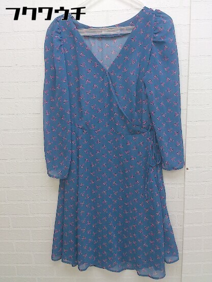 - ◇ ◎ one after another NICE CLAUP 花柄 ラップ巻き 長袖 膝丈 ワンピース サイズF ネイビー パープル レディース