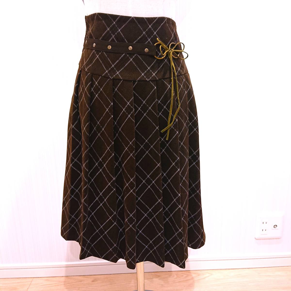 - 伊の美 ひざ丈スカート 茶 台形 前プリーツ Sサイズ