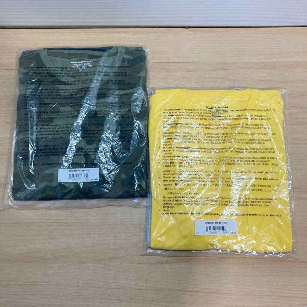 - 新品 [Amazon Essentials] Tシャツ チャコール/グリーン カモフラージュ/ポケット付き イエロー/ライトグレー XS 半袖 メンズ 4枚セット(71