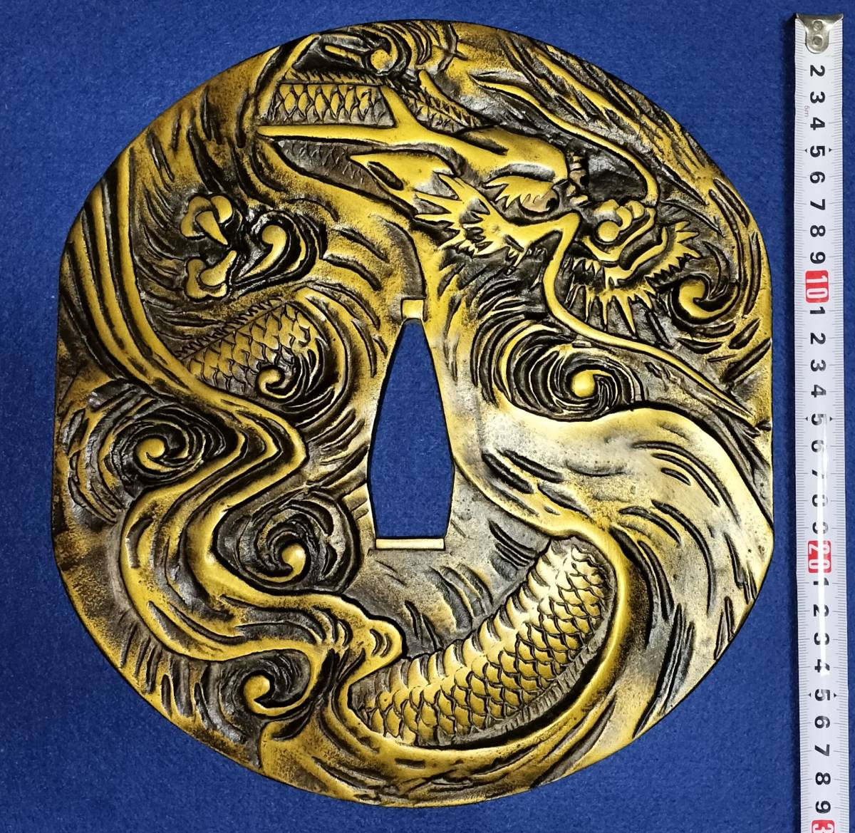 - 特大の鍔 龍 ドラゴン プレート 看板 お部屋のインテリに 玄関飾り 刀剣商看板 職方看板 日本刀 刀装具 アウトロー系撮影用等