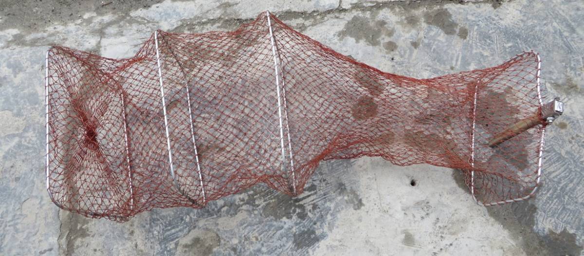 - Z-2969■ワイヤービク 柄付 網 魚籠 四角 口径35cm/底径38.5cm/長さ112cm 中古 現状渡し