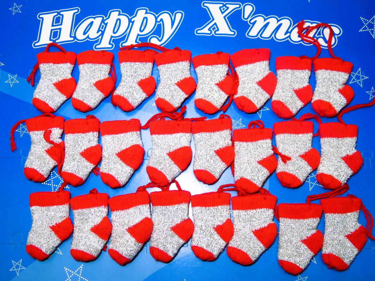 > 【☆ニットラメソックス☆100個】クリスマスリース作り 販売促進 ディスプレイ ツリーオーナメント 靴下 ストッキング シルバー/レッド