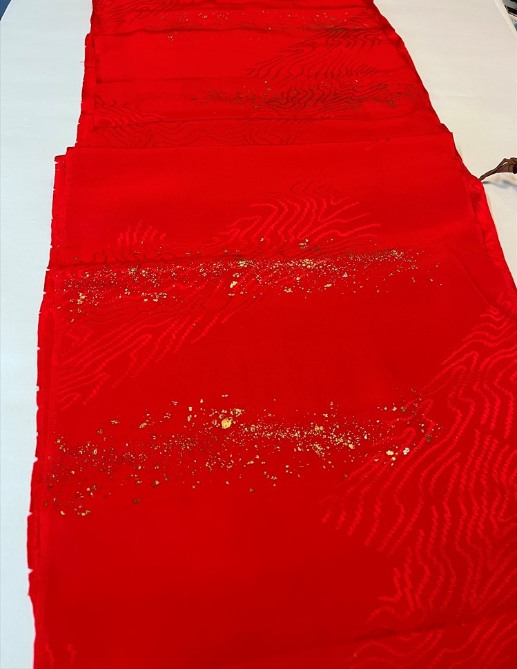 - 花とら●リサイクル アンティーク端切れ 赤 モダン 金 リメイク 素材 付け袖としても 220916ーA