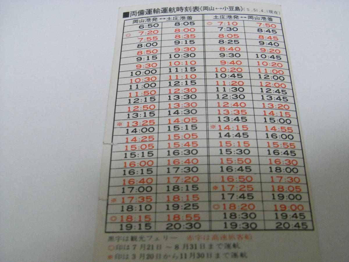 - 両備運輸運行時刻表(岡山-小豆島) 昭和51年4月1日現在