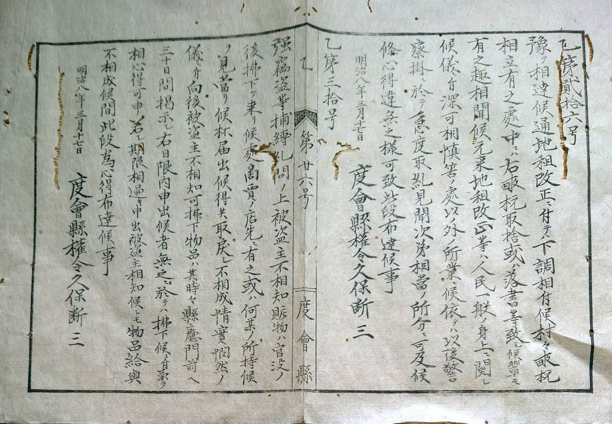 - f23030225〇明治布告布達 明治6年 地租改正に付いては 警察掛に於いて取糾 度会県 三重県〇和本古書古文書