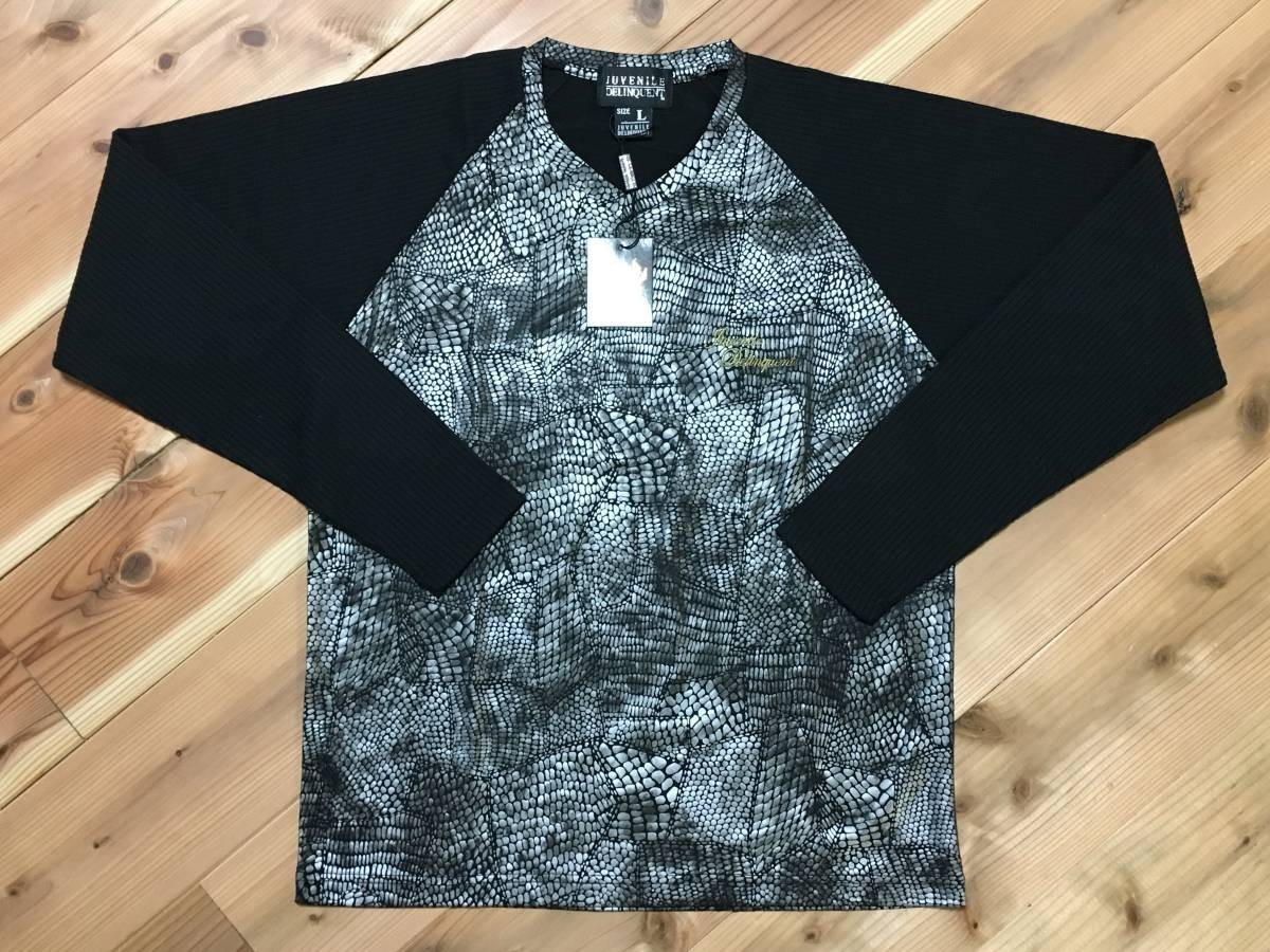> 未使用品 JUVENILE DELINQUENT ジュベナイルデリンクエント スネーク柄 ラグランTシャツ ストレッチ ST-317 シルバー サイズL