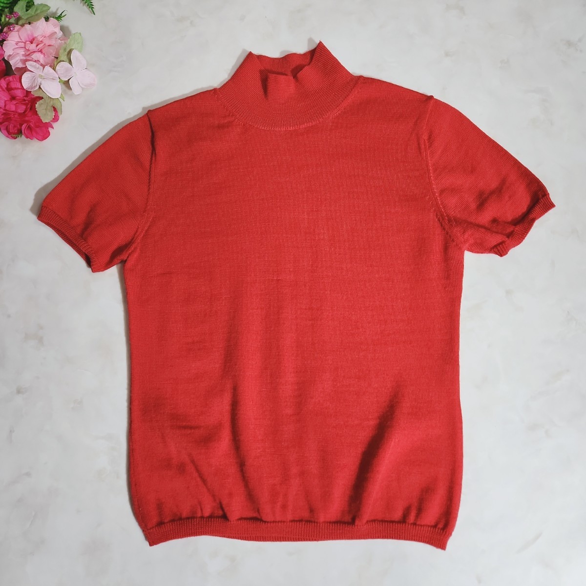 - イトキン ELL PLANETE ウール100% ハイネック 半袖ニット 赤