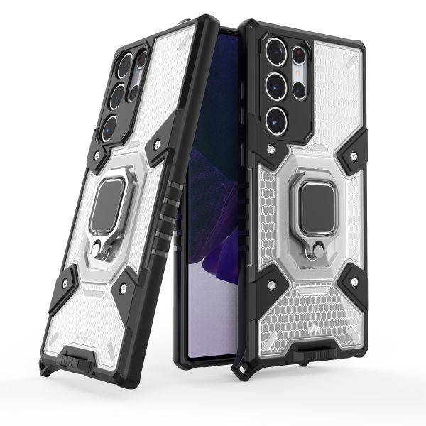 - A在庫処分 透明 Galaxy S22 Ultra 5G 指リング付き ケース 衝撃 カバー ギャラクシー SCG14 SC-52C 超頑丈 保護 丈夫 米軍 耐衝撃 スタンド