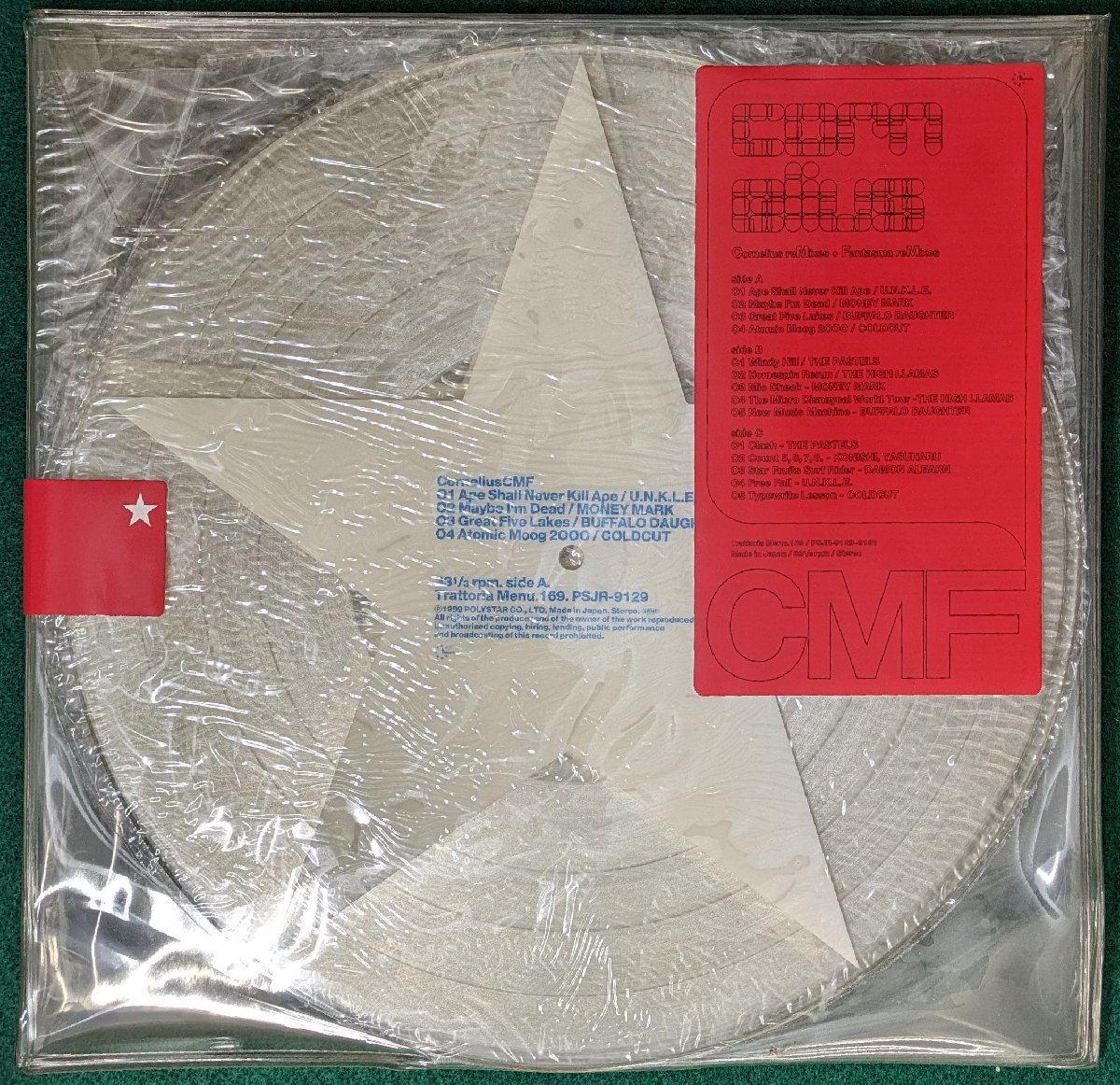 PSJR-9129~9131 TRATTORIA レア★未開封★中古LP「CMF」CORNELIUS / コーネリアス SIDE A1 APE SHALL NEVER KILL APE / U.N.K.L.E.2 MAYBE I'M DEAD / MONY MARK3 GREAT FIVE LAKES / BUFFALO DAUGHTER4 ATOMIC MOOG 2000 / COLDCUT SIDE B1 WINDY HILL / THE PASTELS2 HOMESPIN RERUN / THE HIGH LLAMAS3 MIC CHECK / MONEY MARK(REMIX)4 THE MICRO DISNEYCAL WORLD TOUR / THE HIGH LLAMAS(REMIX)5 NEW MUSIC MACHINE / BUFFALO DAUGHTER(REMIX) SIDE C1 CLASH / THE PASTELS(REMIX)2 COUNT 5,6,7,8, / 小西康陽(REMIX)3 STAR FRUITS SURF RIDER / DAMON ALBARN(REMIX)4 REE FALL / U.N.K.L.E.(REMIX)5 TYPEWRITE LESSON / COLDCUT(REMIX) 盤質:黄色い変色あるが、新品ジャケット:黄色い変色あり。未開封3枚組 小山田圭吾(おやまだけいご ) 送料は送料・配送についてをご覧ください。中古レコードに関してご理解のうえご入札ください。