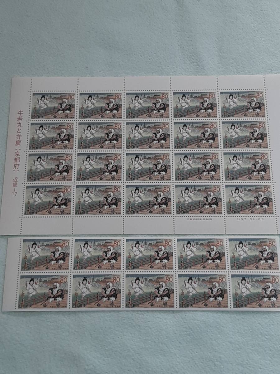 ふるさと切手 牛若丸と弁慶(京都府)近畿-17 H7 切手シート1枚と10枚シート