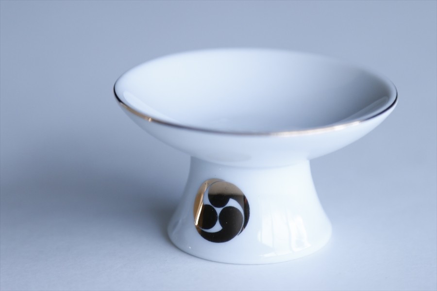 - 国産 神具 土器 ともえ ■ 巴紋 高杯 2寸 1対(2枚) ■ 小・中型 神棚に最適 ■ 右三つ巴 ■