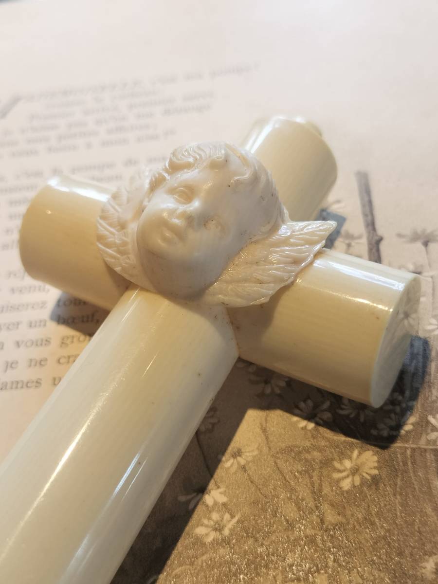 - フランス アンティーク 可愛い 天使 ゆりかご クロス 十字架 ベービー 1900年代 アイボリー色!