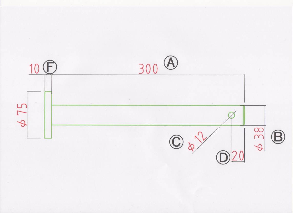 - NO 1696 Φ38用 ツバ下300mm バケットピン1本 重機用 参考図面有り