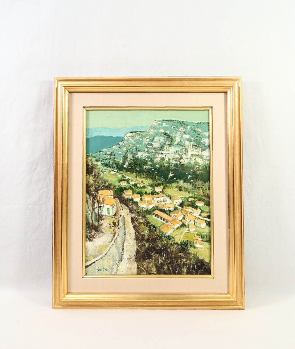 - 真作 斎藤実 油彩「レ・ボー・ド・プロヴァンス」画寸 F6 長野県出身 仏南西部ブーシュ=デュ=ローヌ県の深い谷間にある小さな町 8393