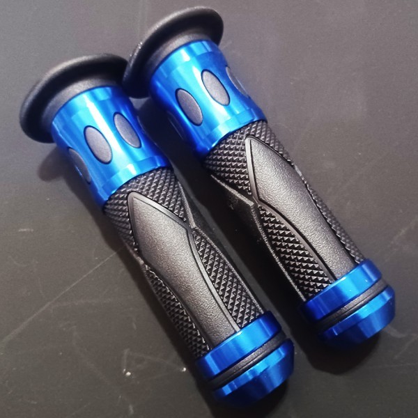 > CB400SF NC31 NC39 NC42 CB750F CB1000SF CB1100RS CB1300SF CB1300SB 汎用 アルミ ラバー グリップ ハンドル バーエンド アクセル 青