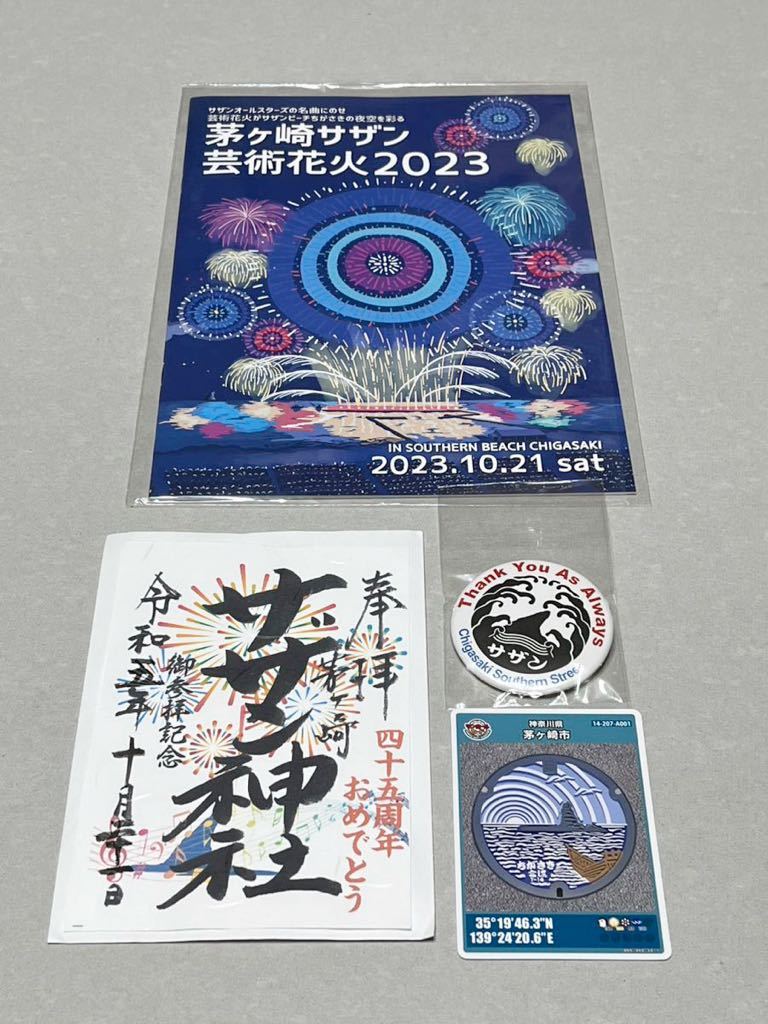 > 茅ヶ崎 サザン神社 バッジ おまけ 御朱印 サザン花火大会2023 パンフ エボシ岩 マンホールカード サザンオールスターズ 茅ヶ崎ライブ 10/21