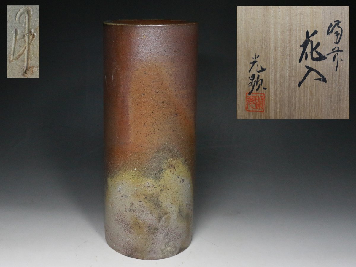 - ■備前■日幡光顕人・花入・花瓶・栞・共布・共箱・検 伊勢崎陽山 石井不老・f903