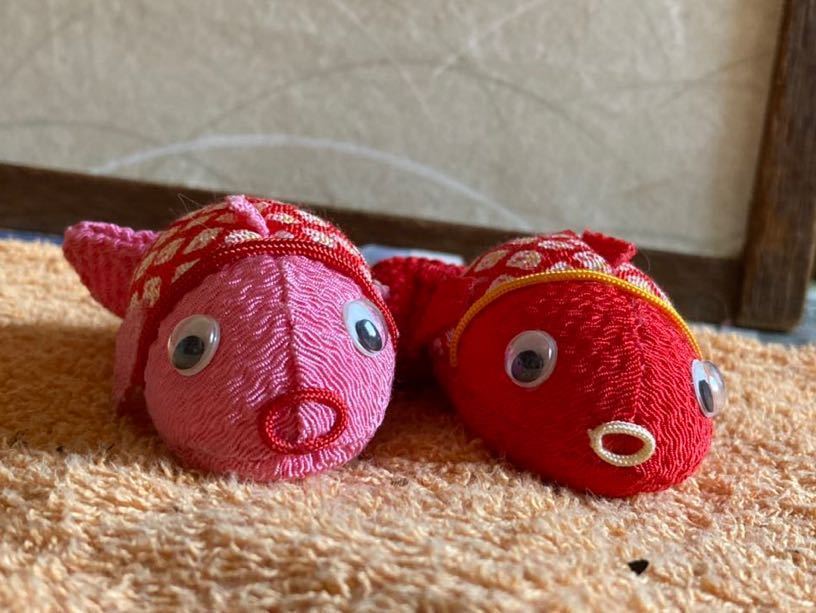 - アンティーク?骨董品?ちりめん細工 ?縮緬 ?着物生地?古布 ?金魚のお手玉?2点セットです。