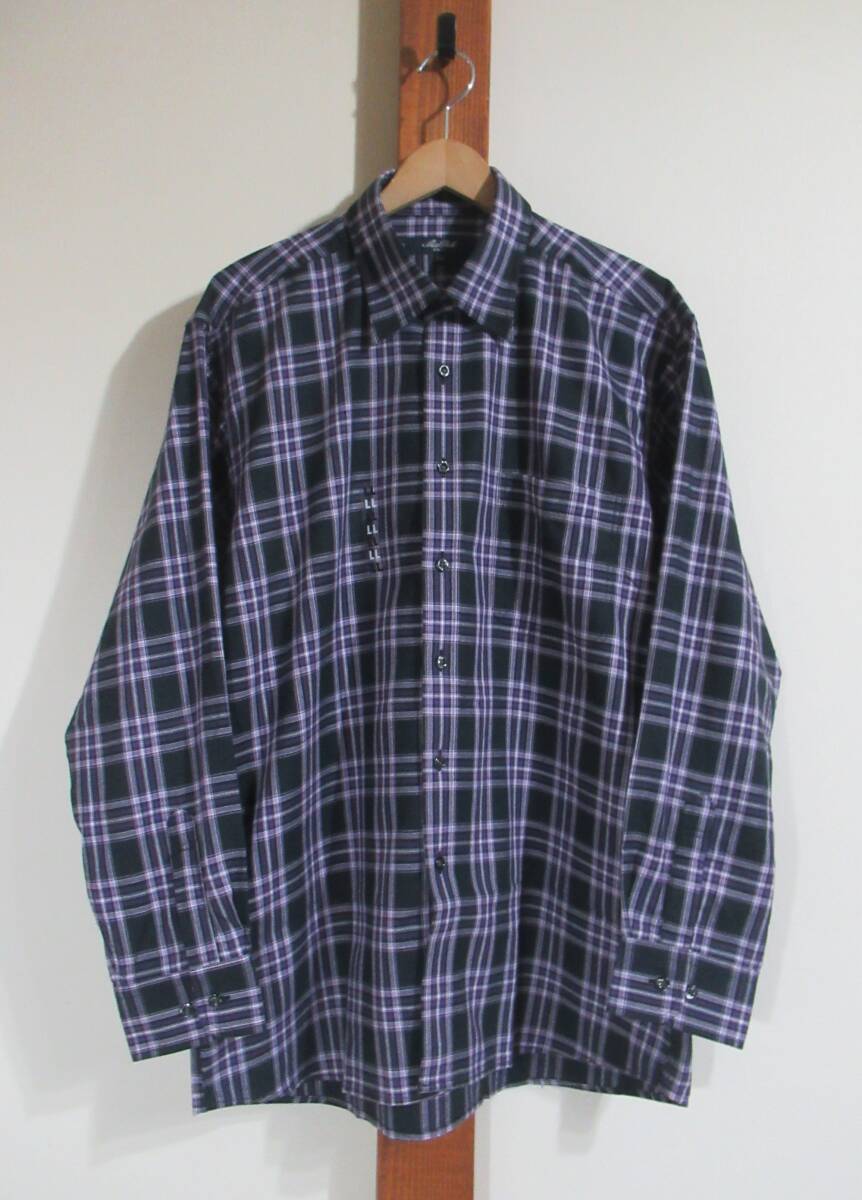 > 未使用品 LLサイズ★MacBeth/Mac Beth/マクベス●シャツ チェック パープル×ネイビー系 KCSカンパニー