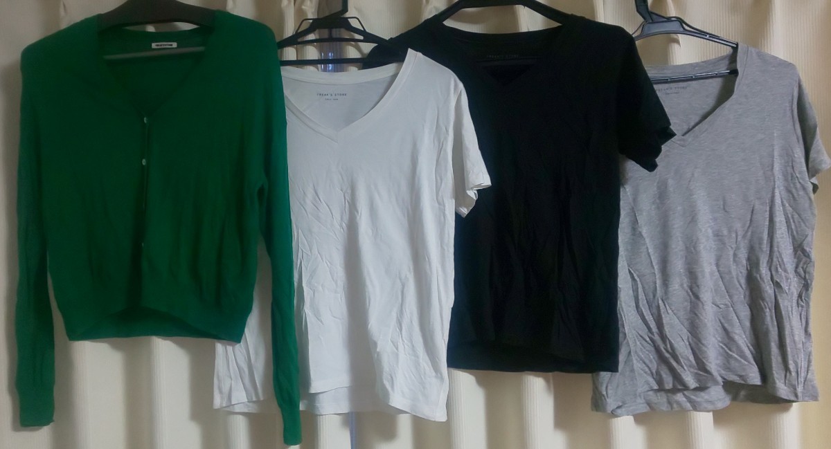 > 古着4着セット FREAK'S STORE 半袖Tシャツ(Sサイズ) カーディガン(フリーサイズ) ブラック ホワイト グレー グリーン 部屋着などに