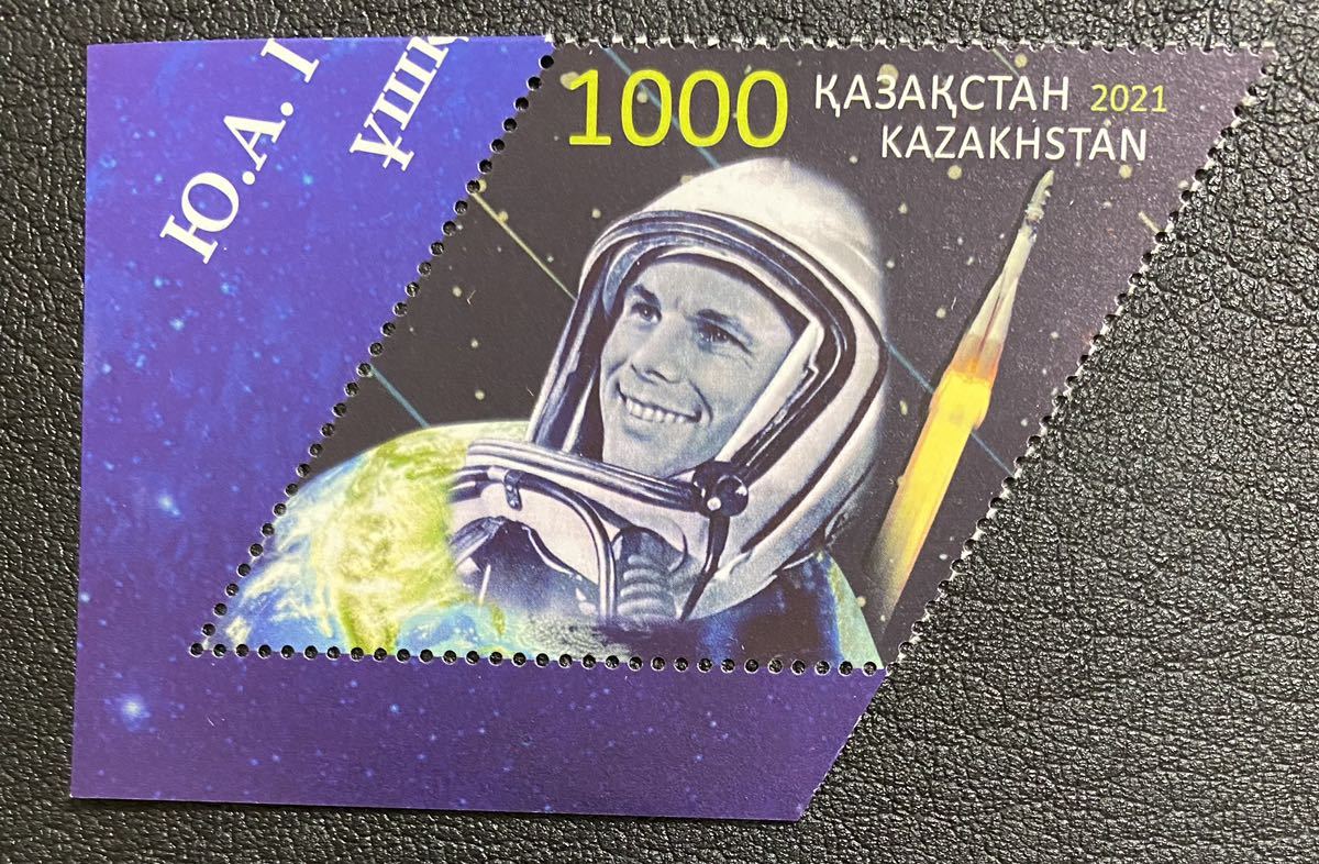 - カザフスタン 有人宇宙飛行60年 天体 平行四辺形切手 1種完 未使用 NH