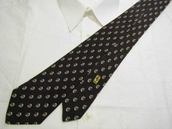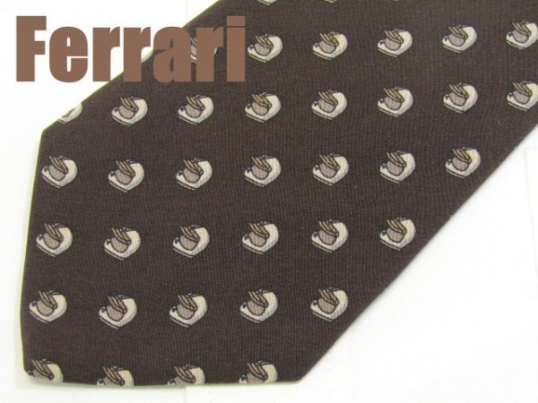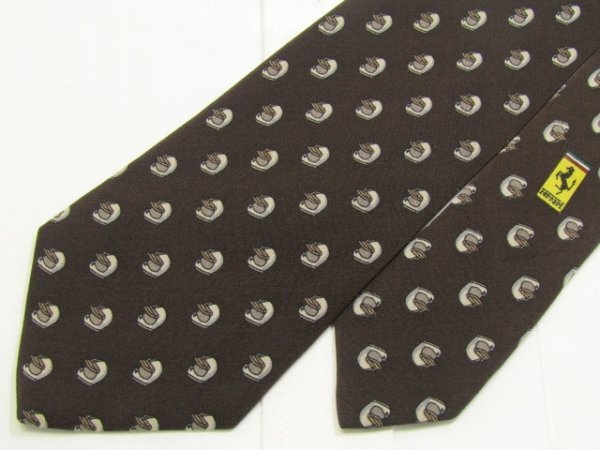 > 【車 フェラーリ 】 AA 226 フェラーリ Ferrari ネクタイ 茶系 ヘルメット柄 小紋柄 フェラーリロゴワンポイント プリント