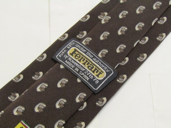 - 【車 フェラーリ 】 AA 226 フェラーリ Ferrari ネクタイ 茶系 ヘルメット柄 小紋柄 フェラーリロゴワンポイント プリント
