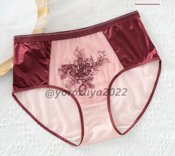 > 70-153-8 光沢サテン 透明レース メッシュ 過激 セクシー ショーツ 【ワイン,F】大きいサイズ パンティ プラスサイズ ランジェリー.1