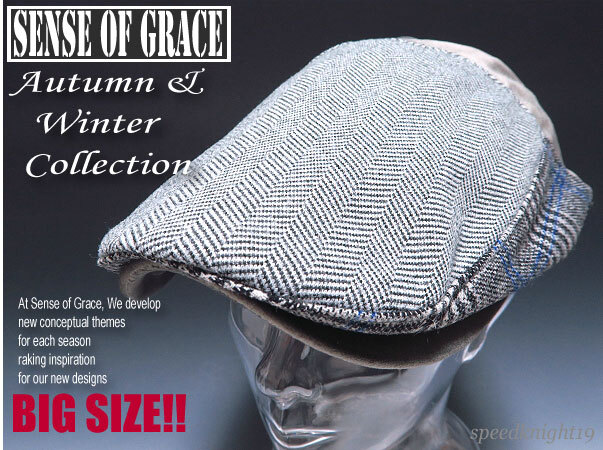 > grace 大きいサイズ★ヘリンツイードハンチング【D.GR/XL】新品 定価¥4300 サイズ調節可能 男女兼用 ヘリンボーン チェック コーデュロイ