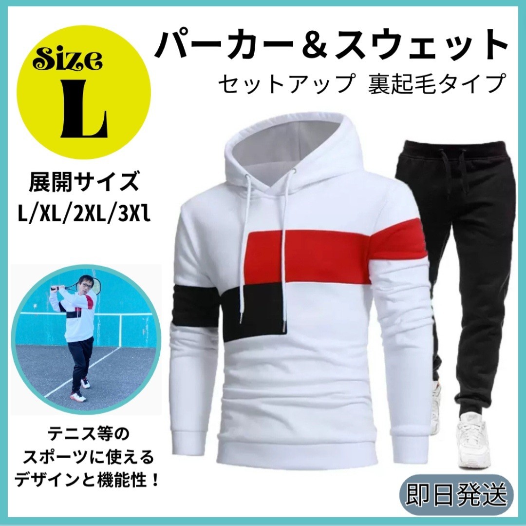 > L スウェット セットアップ 上下セット パンツ パーカー メンズ レディース コーデ 韓国 スポーツ ルームウェア 白 黒 長袖 シャツ テニス