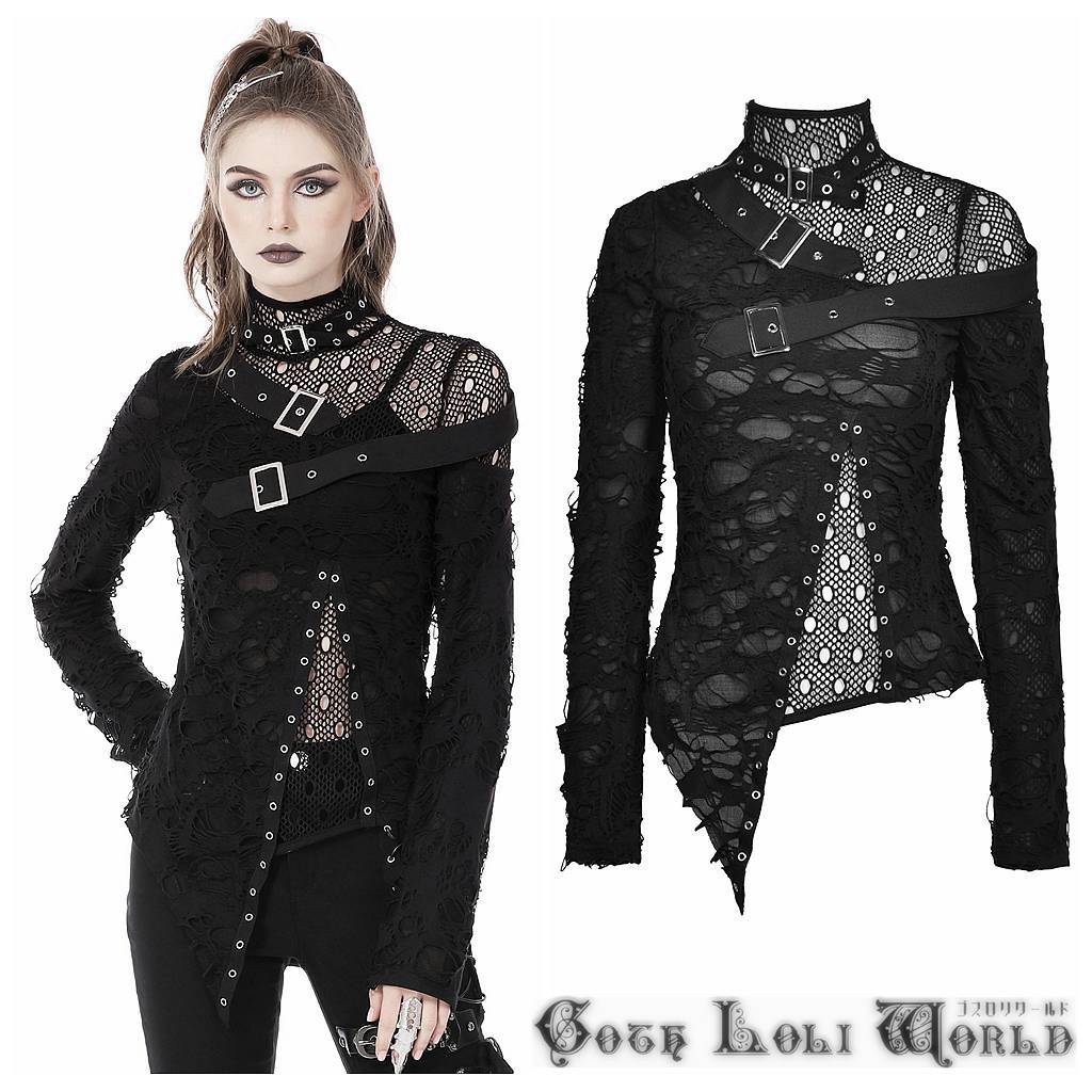- TW462-XS ダメージ風メッシュトリプルベルト カットソー ゴスロリワールド ゴシック パンク ロック ロリィタ ビジュアル系 V系