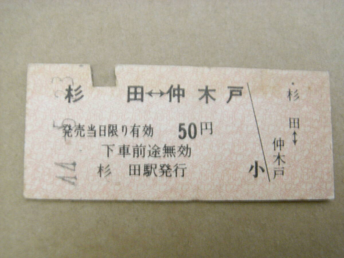 - 京浜急行電鉄 杉田→仲木戸 50円 昭和44年5月23日 杉田駅発行 京急