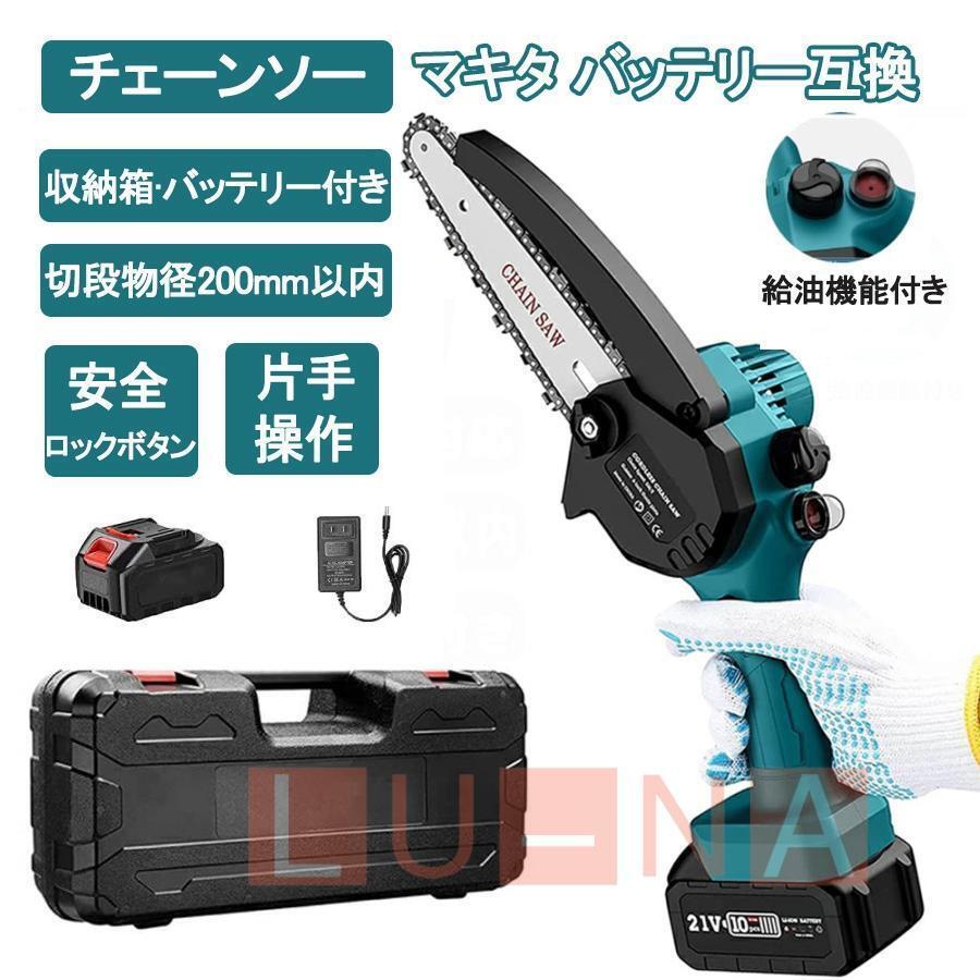 > チェーンソー 充電式 8インチ 小型 バッテリー1個付属し マキタバッテリー互換 ブラシレスモータり 片手 切段物径15cm 木工切断 枝切り