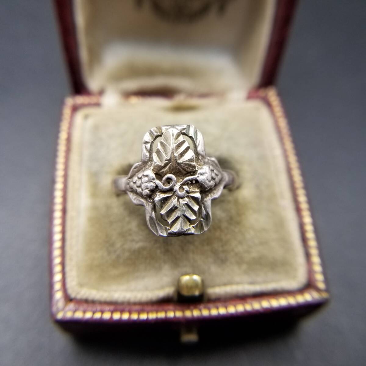 - ぶどう 植物 モチーフ 彫刻 ビッグシルエット 925 ヴィンテージ シルバー リング 指輪 ジュエリー 輸入 Y13-Y