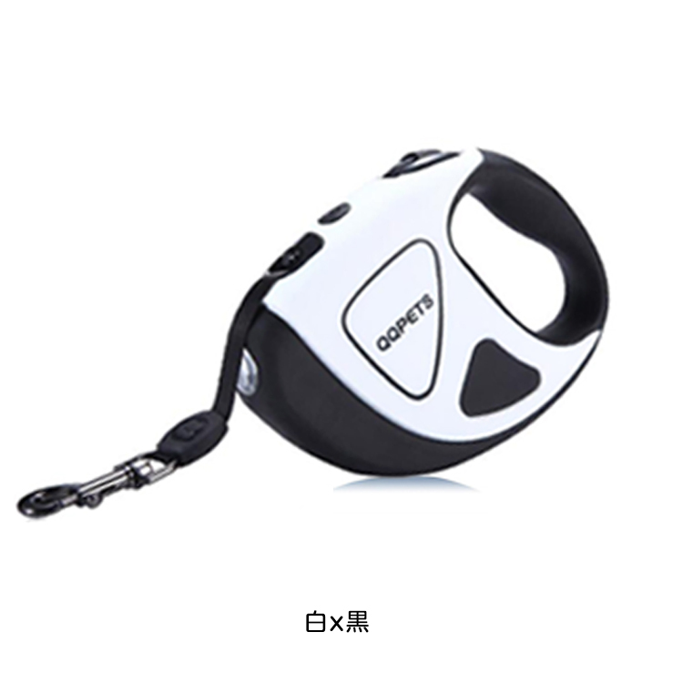- (白x黒5m) 犬用リード 自動伸縮リード LEDライト付き ドッグリード 巻き取り式 ペット用 リード 自動巻き 小中大型犬用 お散歩 お出かけ