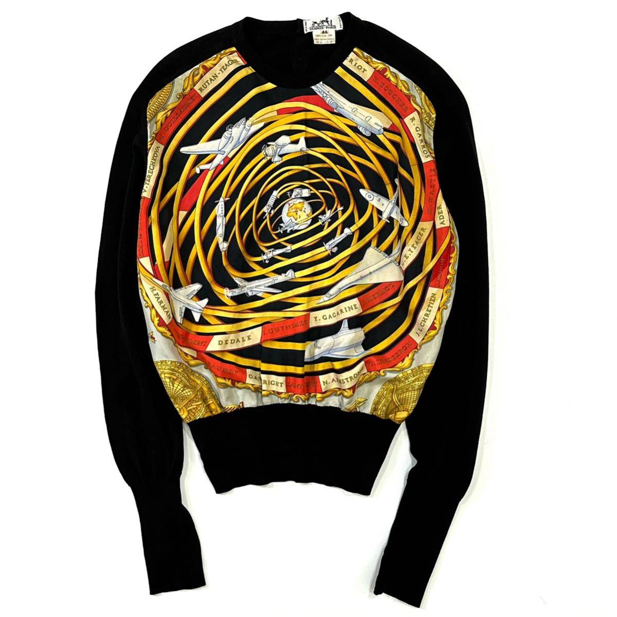 > 希少!!フランス製 HERMES エルメス REVES D ESPACE 飛行機 コットン シルク 切替え ニット セーター (44)レディース トップス vintage