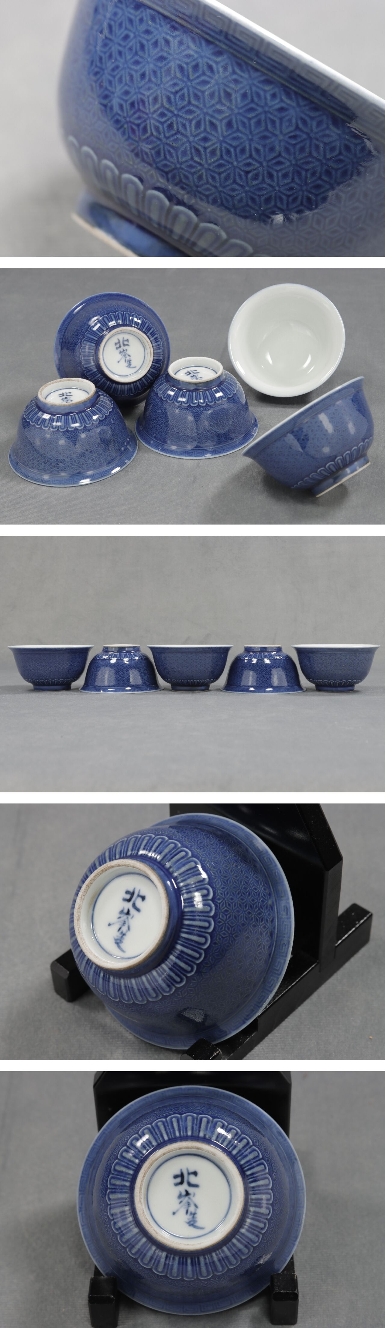 - 天地堂《煎茶器 煎茶道具》北峯造 麻葉文様 煎茶碗 五客揃 唐木盆 平安北峯 大丸北峯 京北峯 麻の葉文様 麻葉紋 麻の葉紋様