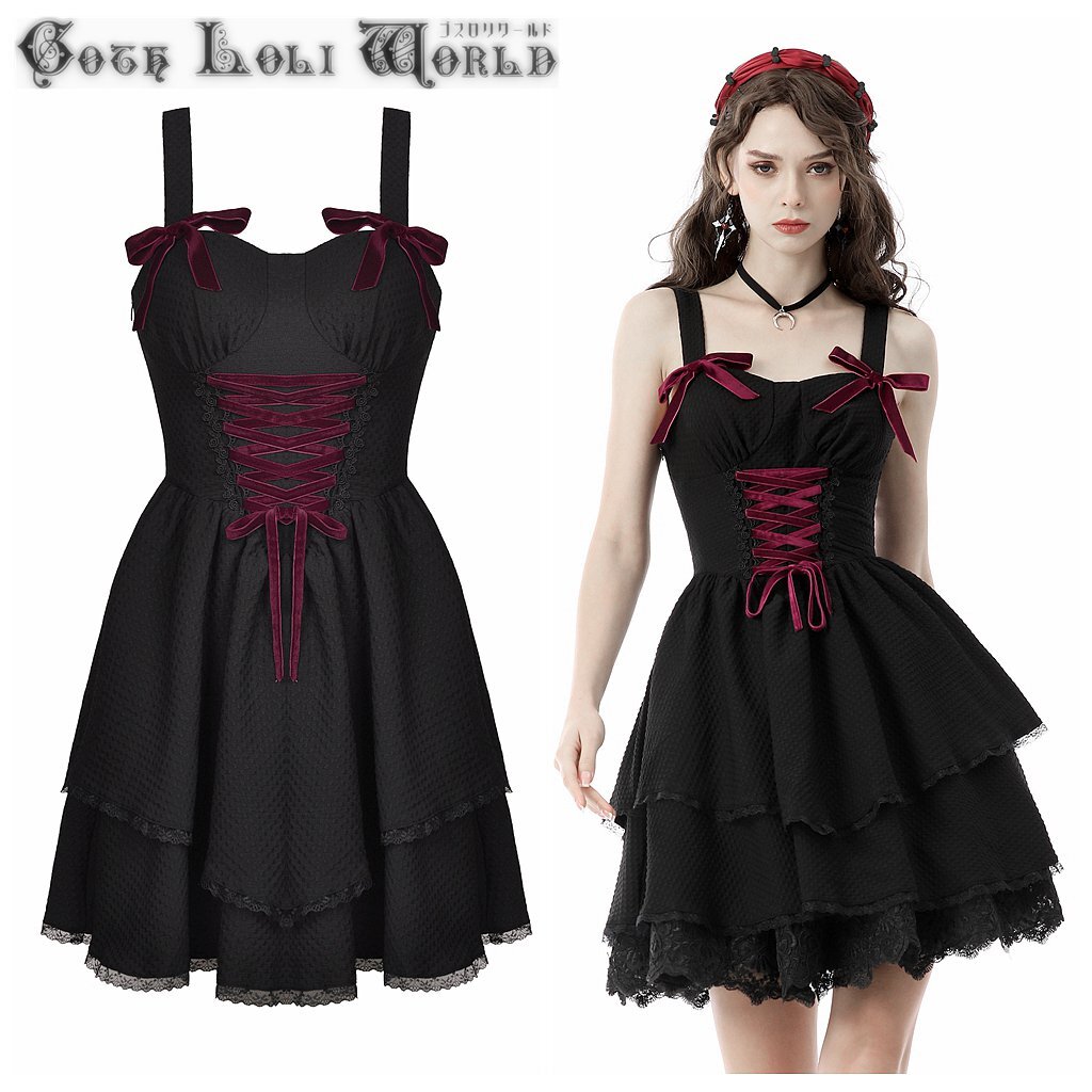 - DW636-L ゴスロリベルベットリボンティアードワンピース ゴスロリワールド ゴシック パンク ロック ロリィタ ビジュアル系 V系