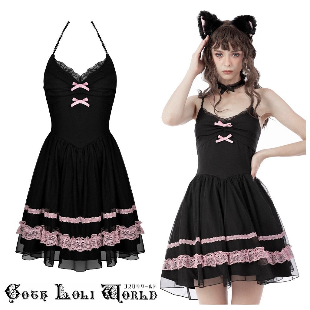 > sale DW654-S バッククロスピンクリボンレースキャミワンピース ゴスロリワールド ゴシック パンク ロック ロリィタ ビジュアル系 V系