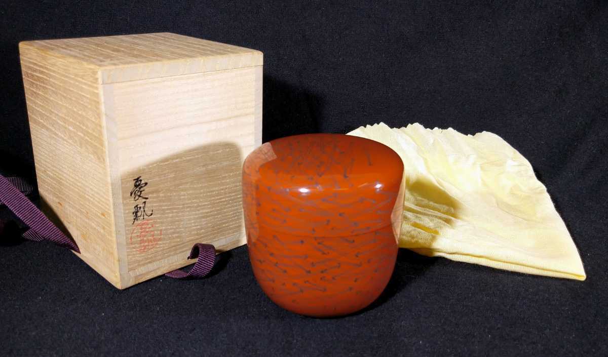 - 塗師 憂瓢 朱塗 松葉文 棗 共箱 黄布 漆芸 茶道具 b-54e1311