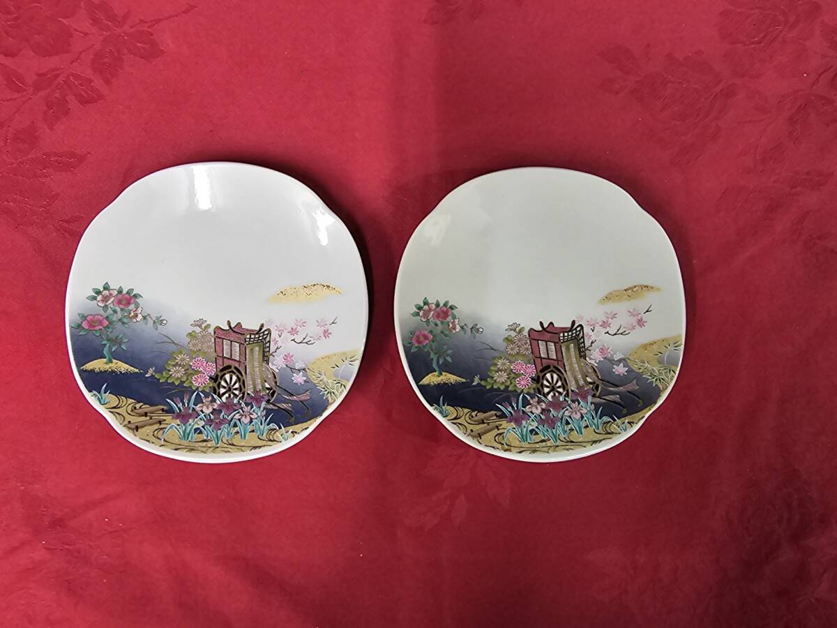 - 陶器 御所車 お皿 プレート 2枚セット サイズ約直径11.5cm高さ1.5cm 飾り皿 ep-274dos