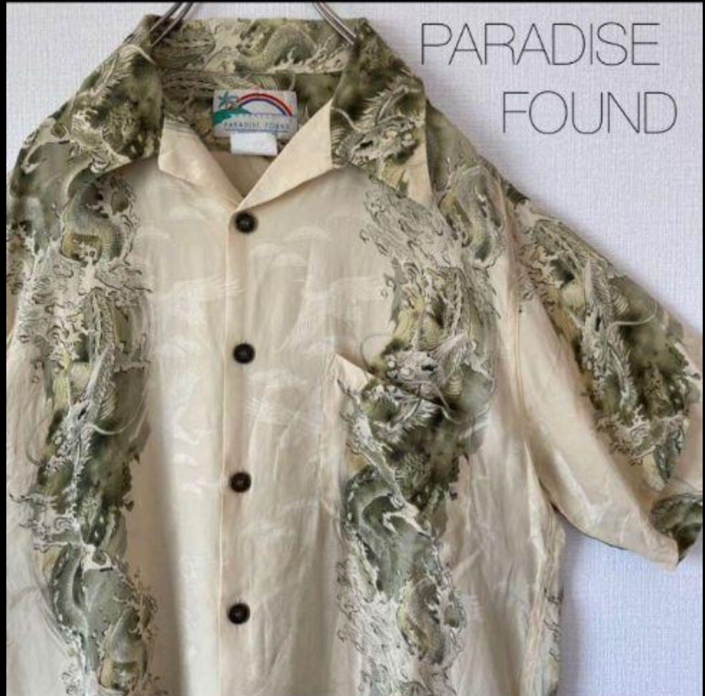 > 【希少】 PARADISE FOUND ヴィンテージ アロハ シャツ 和柄 龍柄 総柄 シルク