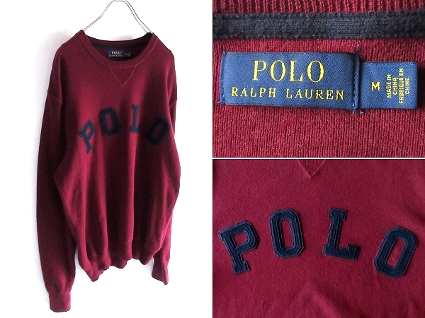 - POLO RALPH LAUREN ラルフローレン レタードロゴワッペン 前V スウェットデザイン コットンフライスニット M バーガンディ 国内正規品
