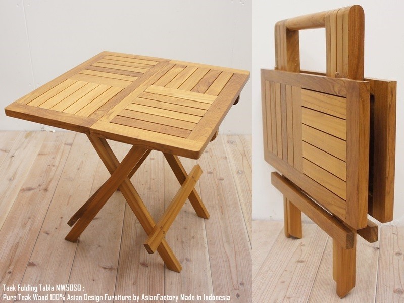 - チーク無垢材 折りたたみテーブル50SQ スクエア 四角 アジアン家具 机 デスク 木製 コーヒーテーブル サイドテーブル 折り畳み